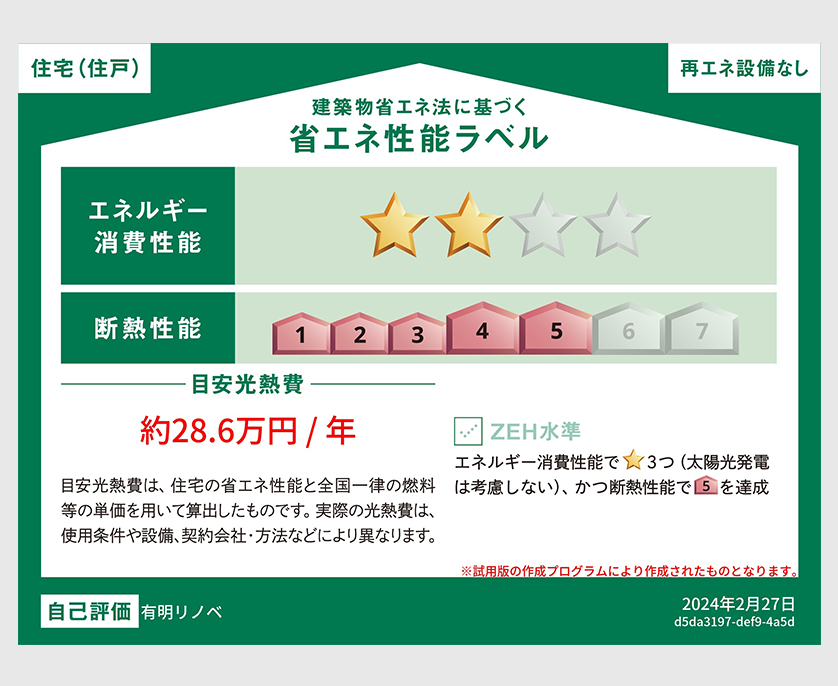 当物件では、省エネ性能ラベル(自己評価)で断熱性能とエネルギー消費性能を可視化。安心できる住まいをお約束します。